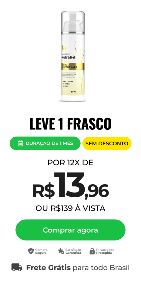É sério! Você fica satisfeita, ou compramos o Clareador NutralFit de volta de você! Se por qualquer motivo achar que o Clareador NutralFit não ajudou, nós nos comprometemos em devolver a quantia paga pelo seu kit. Temos certeza que Clareador NutralFit vai cumprir com o prometido, por isso nosso compromisso é uma garantia incondicional de 30 DIAS.